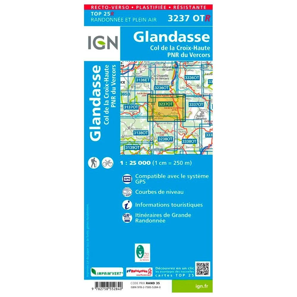 Caractéristiques de la IGN 3237OTR Glandasse, Col de la Croix-Haute, PNR du Vercors :