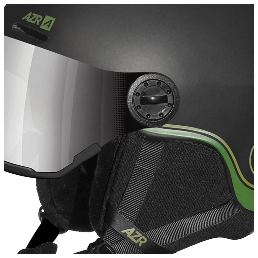 Le casque de ski AZR Nevada Visor est très pratique grâce à sa visière intégrée qui permet de se passer de votre masque. Doté d’une construction en In-Mold, sa coque en polycarbonate est légère et résistance aux chocs ce qui lui permet d’obtenir la certification CE EN 1077. La ventilation est permanente pour limiter la formation de buée sur la visière et la molette de réglage permet d’ajuster au mieux la taille. Enfin, on trouve également une doublure en velours amovible et lavable pour le garder en bon état au fil des années.