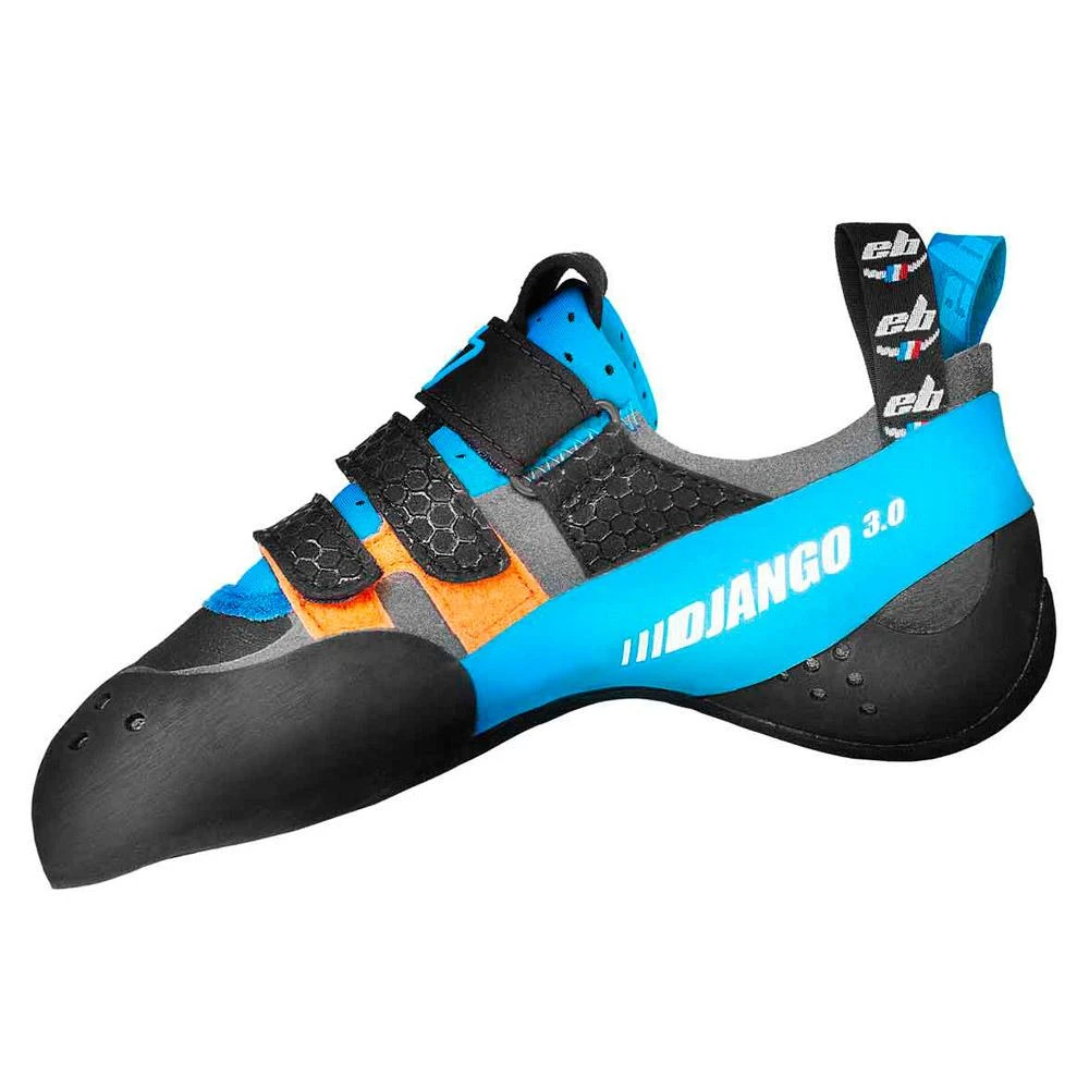 L’EB Django 3.0 est un chausson d’escalade pensé pour les grimpeurs aguerris, avec une forme très asymétrique, une griffe bien marquée et une rigidité qui permettent d’avoir un maximum de sensations pour charger les plus petites prises. La semelle en caoutchouc Daytona de 5 mm apporte toute l’adhérence nécessaire. L’inconfort créé par la contrainte de la forme de ce chausson est légèrement compensé par la tige en microfibre élastique qui épouse votre morphologie de pied, tout en apportant un gain de précision. Un chaussant idéal pour la voie, particulièrement pour l’escalade sportive sur les couennes.