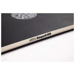 La Squash est une board avant tout pensée pour la courbe dans une conduite alpine. En effet, la position des pieds reculée et la forme effilée, plus fine sur l’arrière par rapport à l’avant, apporte beaucoup de contrôle et d’aisance en courbe, mais rend le switch plus compliqué. Ce shape apporte également une très bonne déjauge, tout comme les spatules volontairement plus larges pour augmenter la portance. Le cambre classique bien marqué assure quant à lui une accroche très efficace sur neige dure. Ainsi, vous pouvez tailler de beaux virages sur tout type de neige et passer votre journée à carver sur les pistes damées ou à slasher la peuf entre les sapins, en fonction des envies et des conditions. Le noyau bois Powercore II renforcé de fibre de verre biaxiale offre un flex medium, bien équilibré entre puissance et confort de ride. On peut aller chercher du rebond dans les virages sur piste grâce au cambre classique, mais on garde une board facile à contrôler et peu exigeante physiquement.