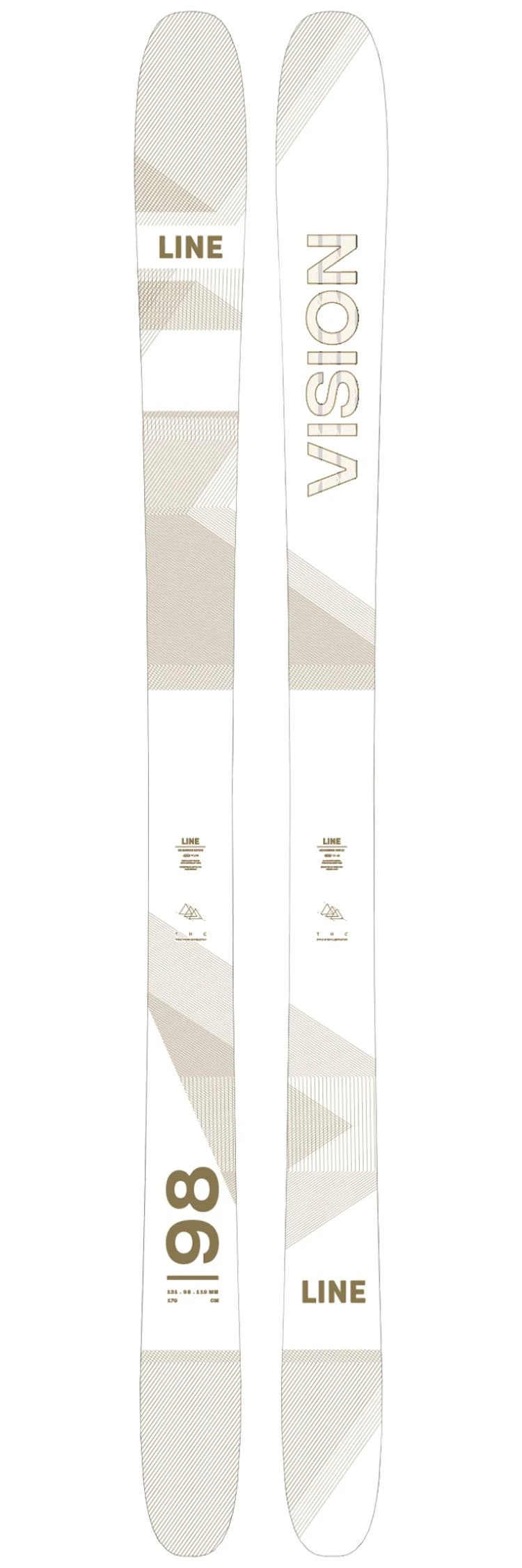 Taillé pour le ski de randonnée et la freerando, le modèle Line Vision 98 est un ski tout-terrain doté d’une largeur au patin de 98 mm. Le cambre classique dont il est pourvu ainsi que le flex directionnel assez ferme lui confèrent une tenue de carre solide et une bonne stabilité, tandis que le double rocker facilite les mises en pivot et le rend très maniable. Son accroche sur neige dure le rendent sécurisant en descente comme en montée et bien que les modèles plus larges de la gamme Line Vision offrent une meilleure flottaison, sa capacité à déjauger dans la fraîche est bien présente. Le Vision 98 intègre également la technologie THC, avec l’association d’aramide, de carbone et de fibres de verre qui assurent un excellent amorti des vibrations et procurent un confort de ride optimal. Enfin, le noyau Partly Cloudy et sa largeur relativement contenue participent à en faire un modèle plutôt léger qui n’est pas trop énergivore à la montée.